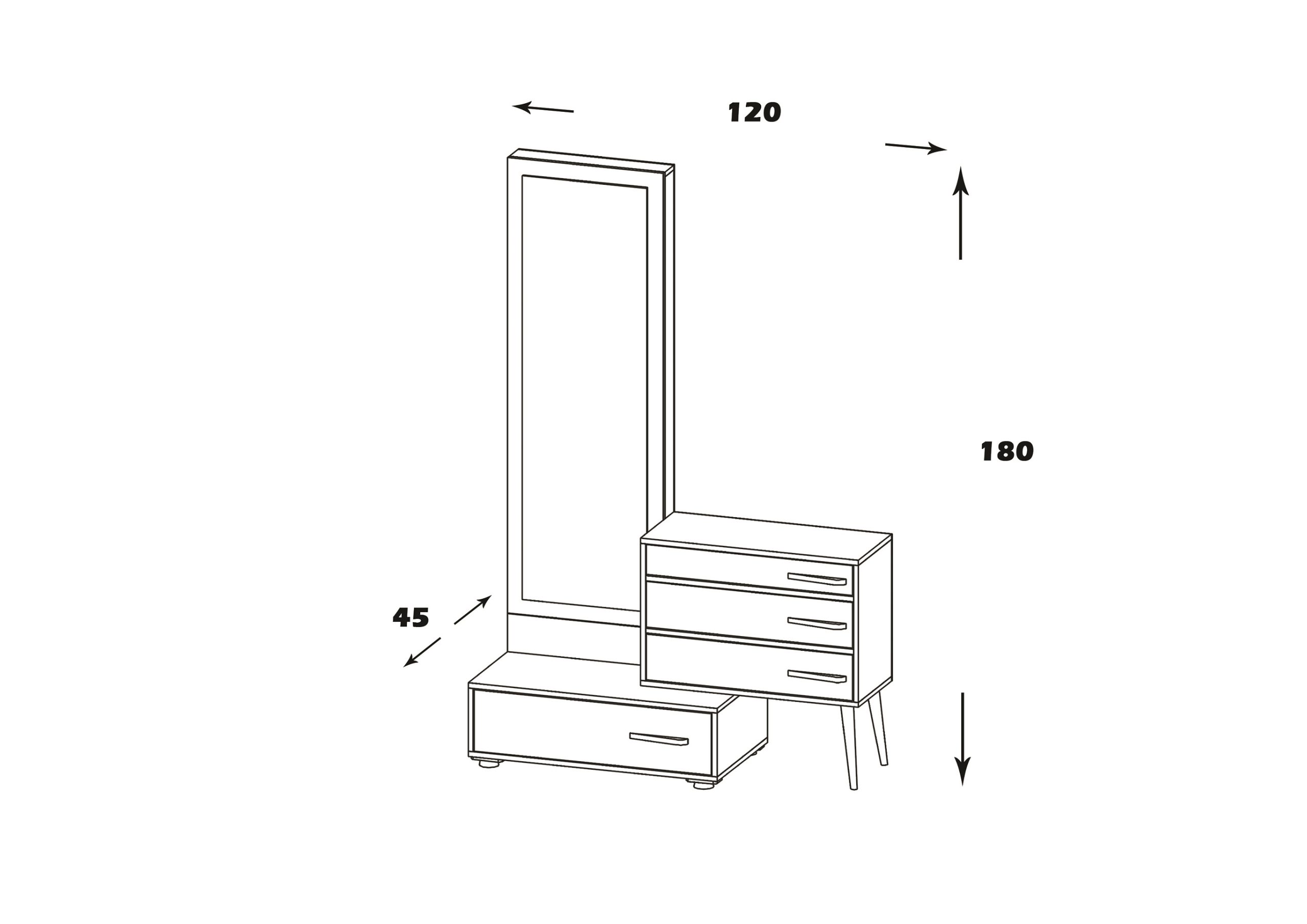 امکانات: چهار کشو،آینه قدی و جای لوازم آرایش