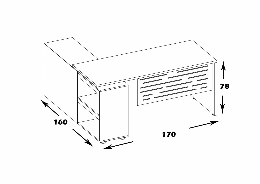 فضای تحت اشغال میز: 170*160*78