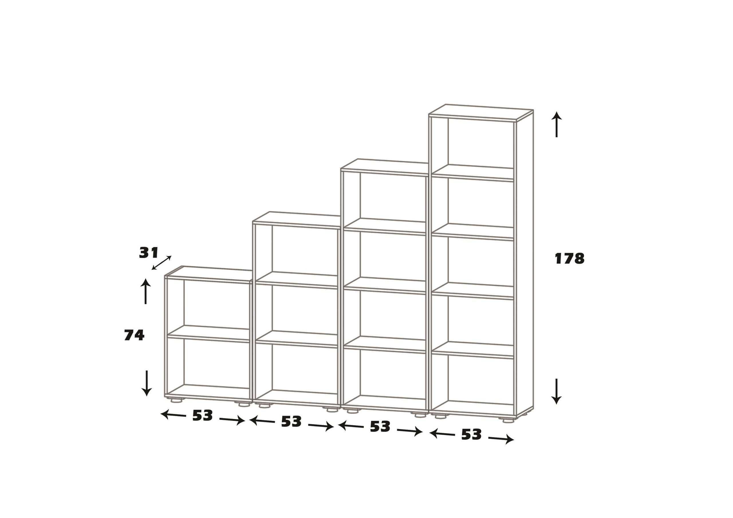 دو طبقه:53*31*74 ,سه طبقه:53*31*109 ,چهار طبقه:53*31*143 ,پنج طبقه:53*31*178 |