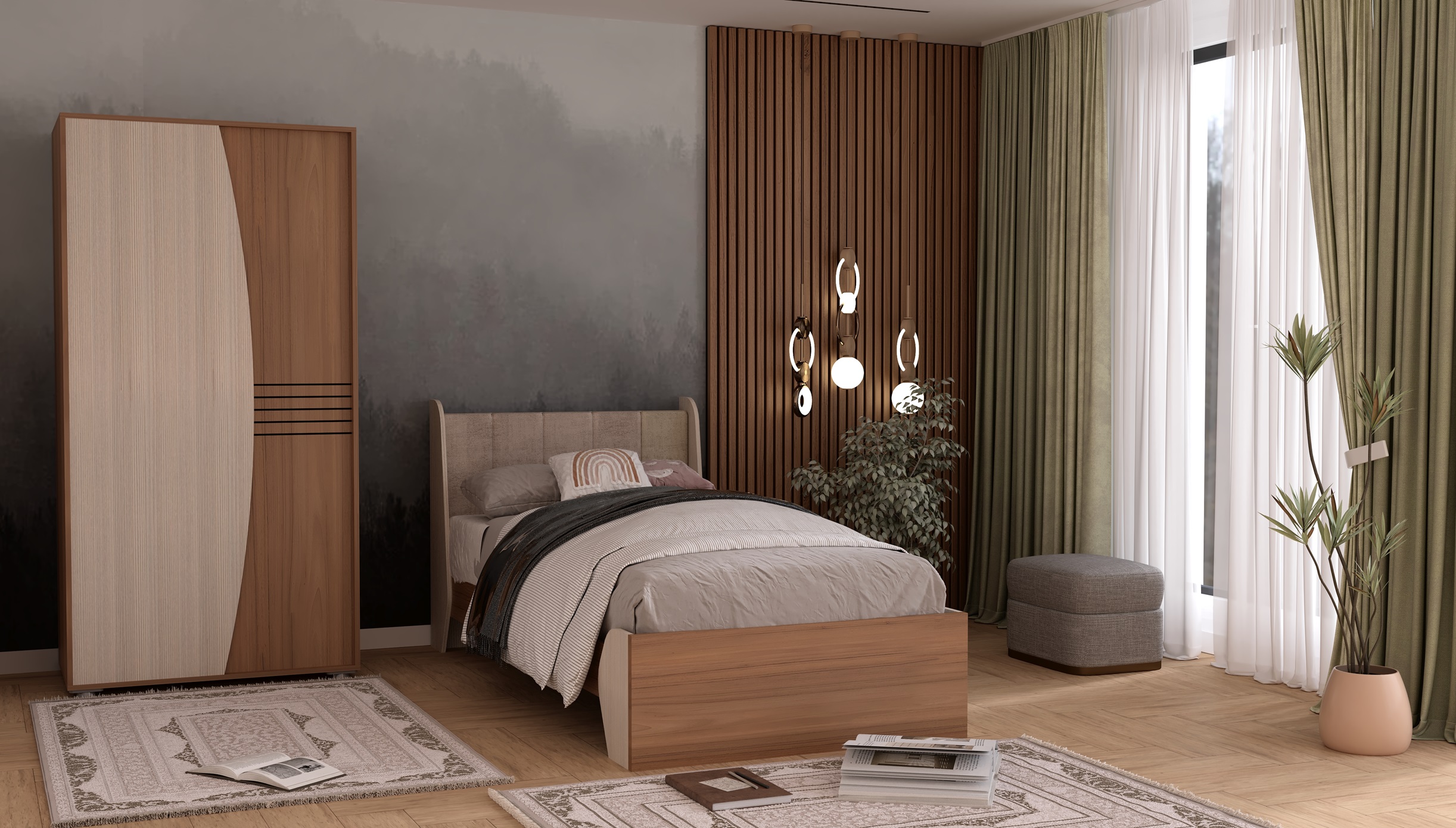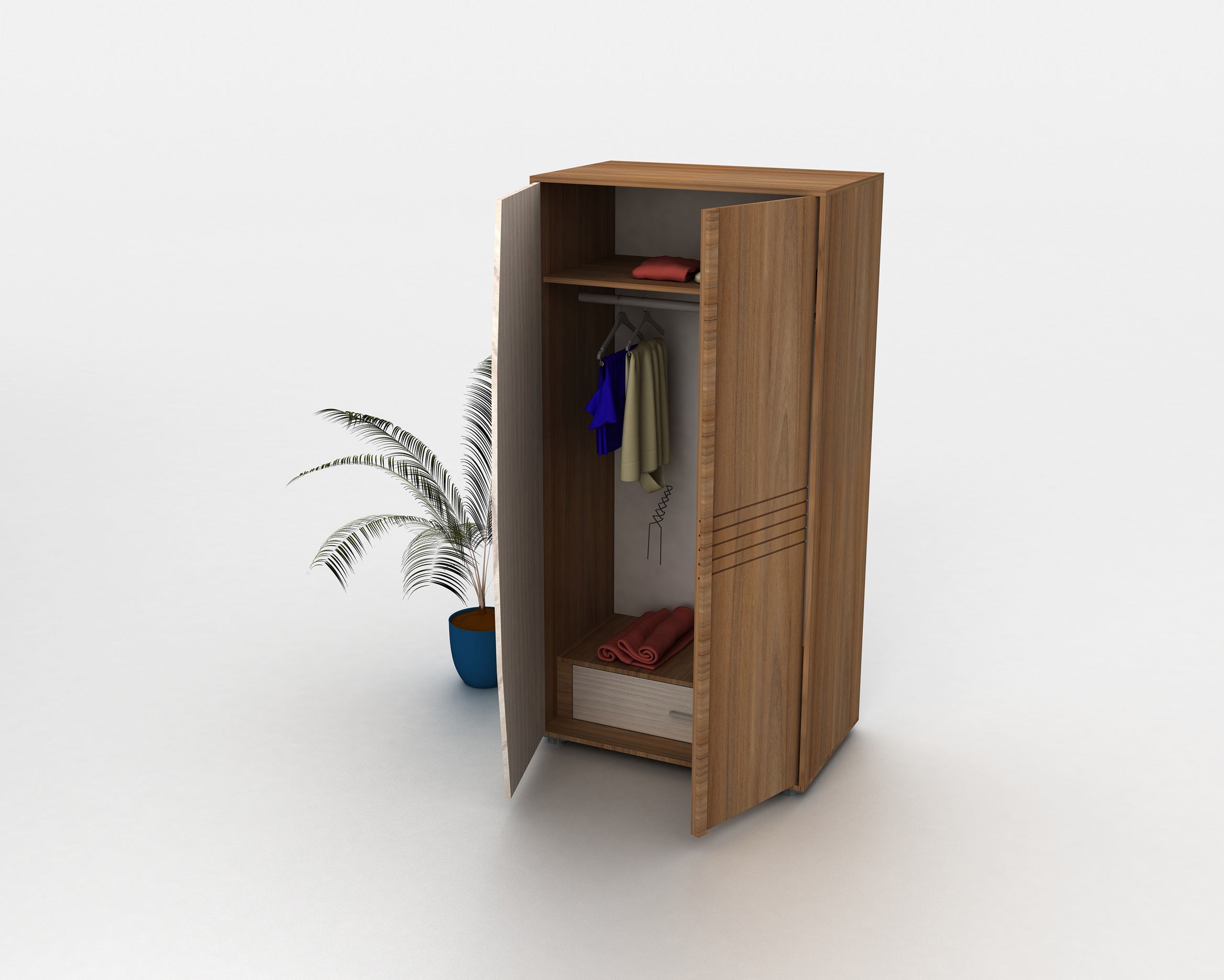 امکانات: جای آویز لباس، طبقه بندی ،کمد و یک کشو.